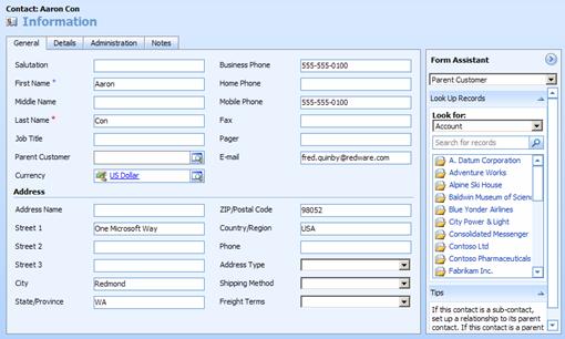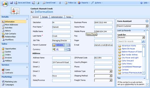 Notice the lookup window that appears when clicking on the lookup button to the right of a field for a related entity. CRM also has auto-response which is an intelligent way of entering data into fields which require you to select a record from a related entity. You can simply enter the required text directly in the field and tab out of the field leaving CRM to search for the best match for you.
