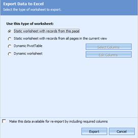 · Dynamic Worksheet. Allows you to select the columns required and export to a dynamic Excel file.