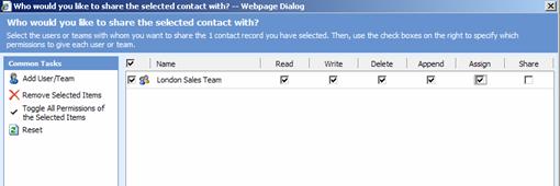 Sharing the entity occurrence with the actions-sharing option does not change or overwrite the security setting but allows other users or teams access to the entity occurrence.